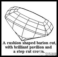 起源:古代典型阶梯型切工的衍生加工方式,所有切面均平行或垂直于宝石的方形外腰围,外形呈矩形,亭部和冠部较扁,底尖收成线状。因常用于宝石祖母绿的加工,故名。使用祖母绿切工的宝石,较难遮眼包裹体,适合净度较高、长方形、边角略带破损或包裹体的宝石原石,其原石留存率可达60%至70%之高。