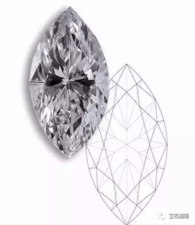 起源:17世纪,法王路易十四时期也译为马眼宝或者舟形切工。此种切工的宝石两端都呈尖角,形似果核,故名。有领结效应。这种切工的原石留存率较低,其特色在两端尖角处,此处的包裹体能够被较好地遮掩,并且尖角处的闪亮度极高。镶嵌时需要注意尖角处的保护。
