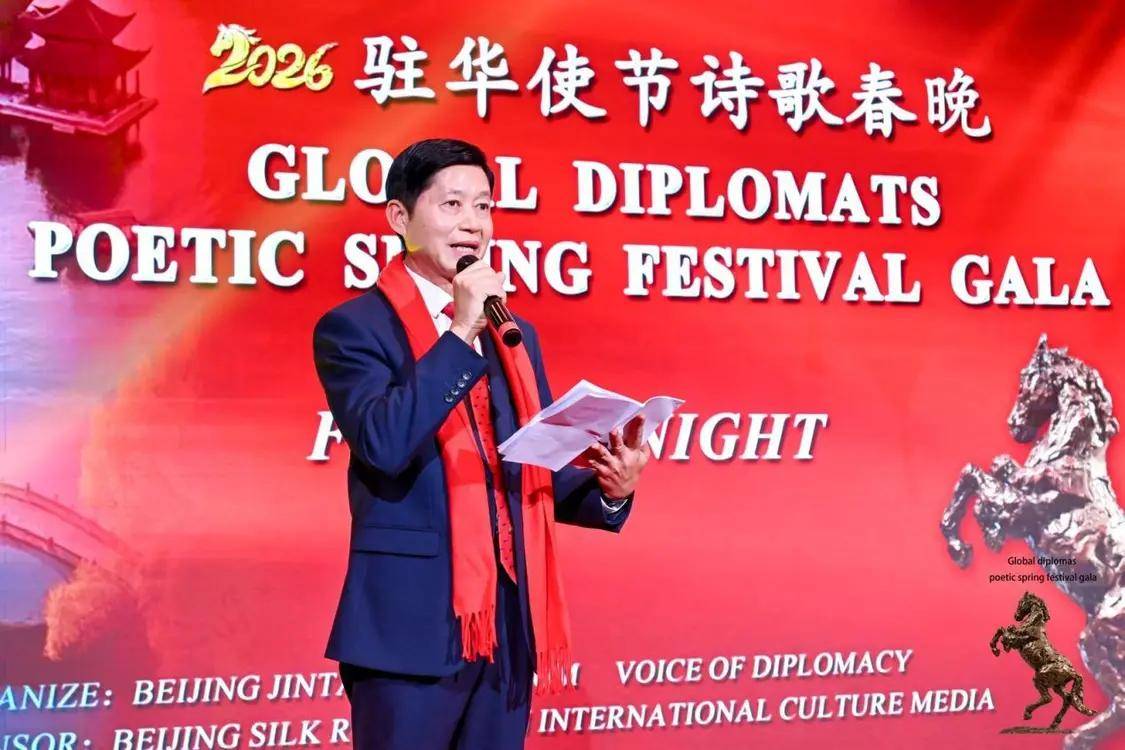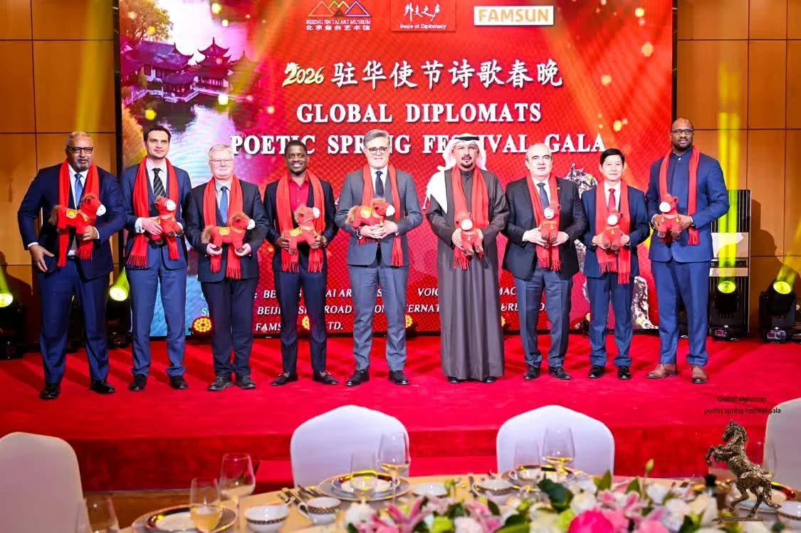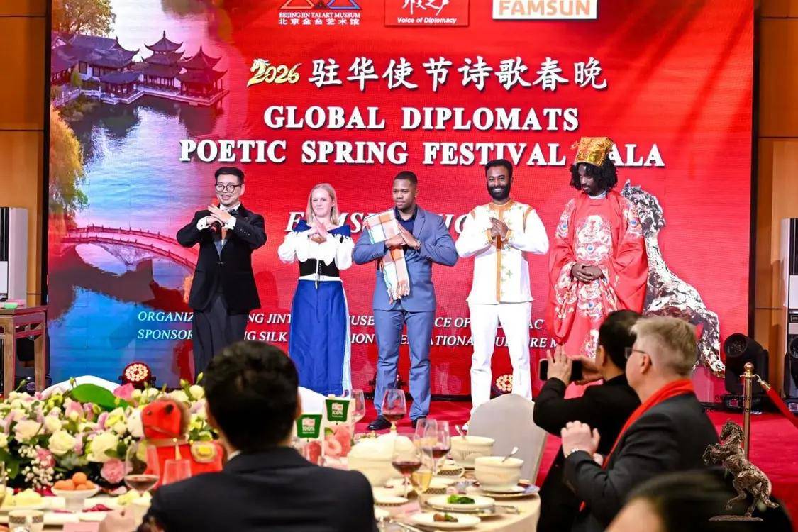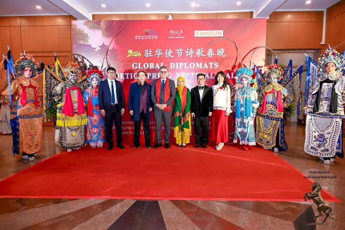 伟德国际(bevictor·1946)源自英国官方网站-2月12日,农历丙午年前夕,由“外交之声”携手北京金台艺术馆联合主办的“2026驻华使节诗歌春晚:丰尚之夜”在京隆重举行,以“世界非遗”春节礼赞敬世界。来自巴基斯坦、巴巴多斯、玻利维亚、佛得角、格林纳达、科威特、拉脱维亚、乌克兰、缅甸、意大利、西班牙、希腊等55国百位驻华使节、国际组织代表及文化学者等齐聚一堂,共赴一场春之约。诗词、京剧、音乐、太极、书画与非遗等文化交相辉映,为即将到来的马年新春谱写了一曲跨越国界的文明交响。