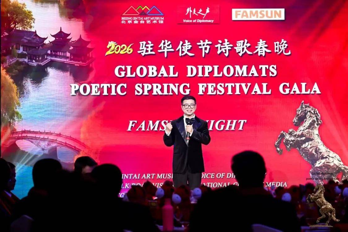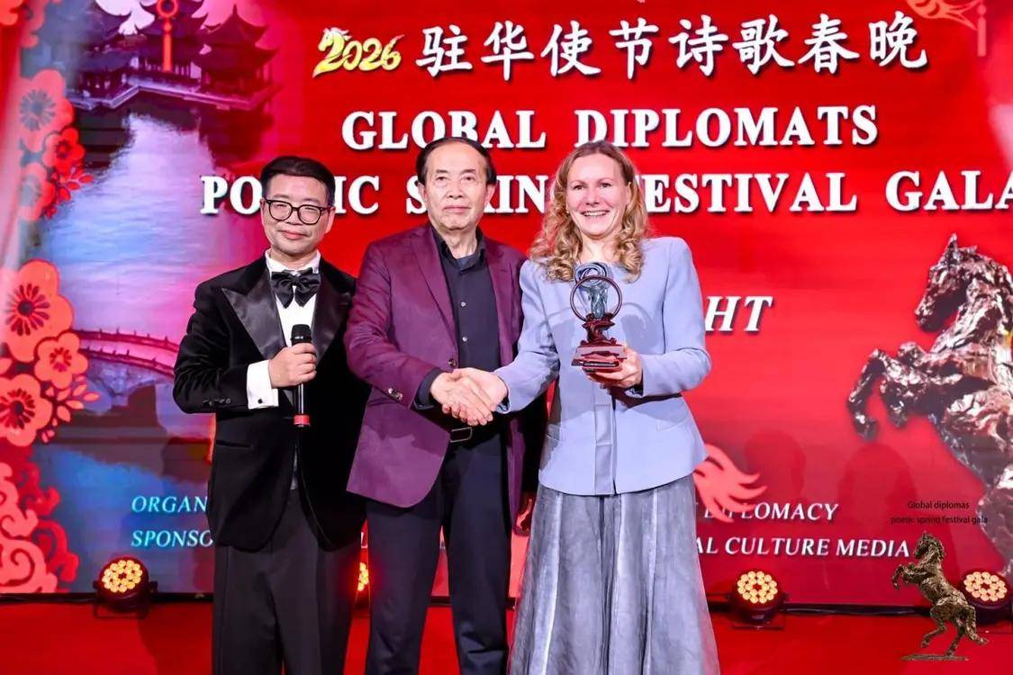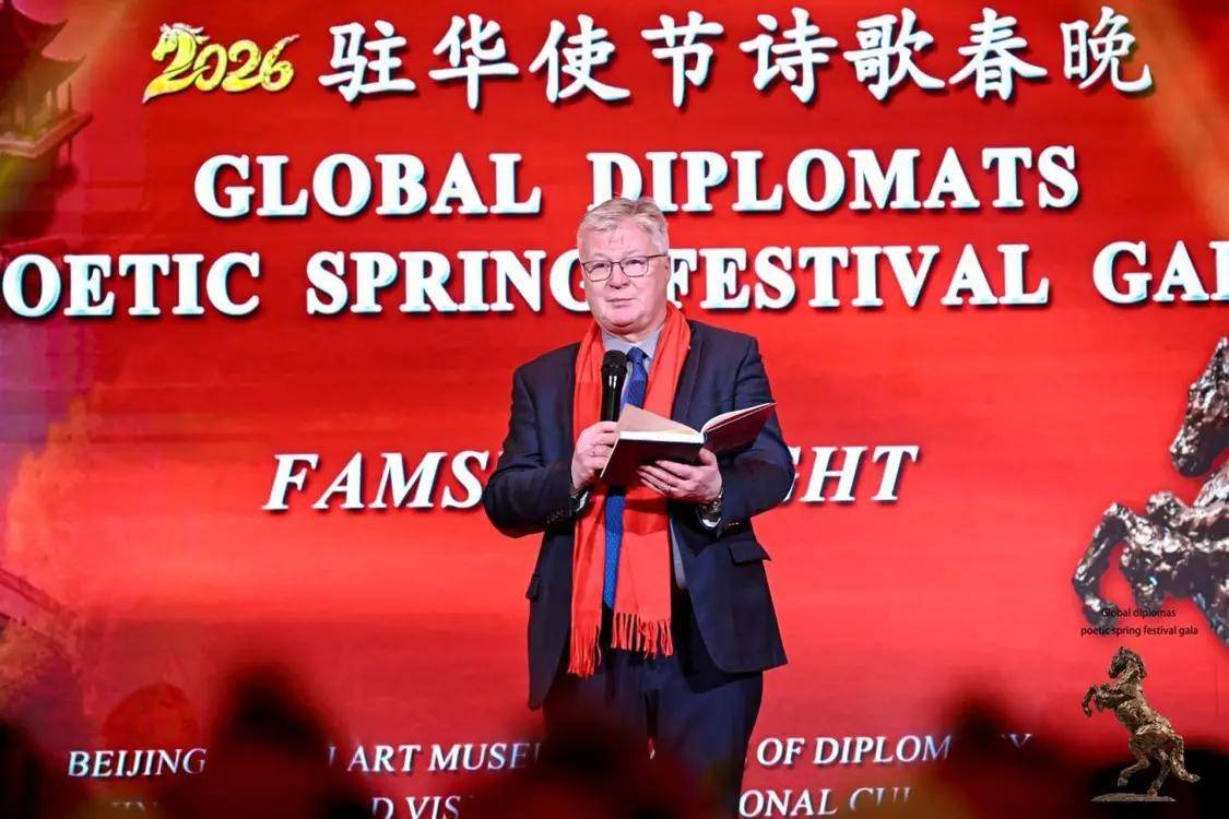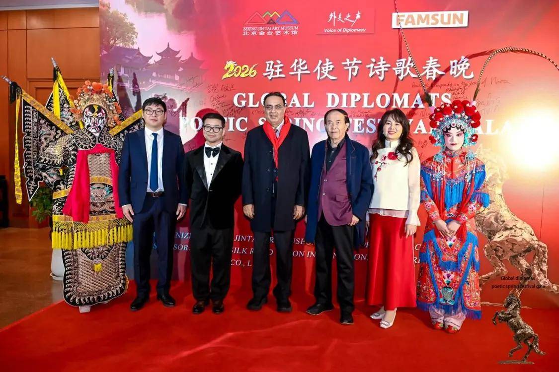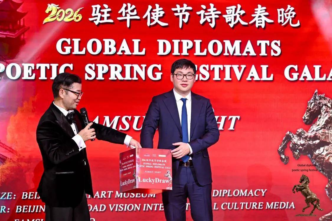 伟德国际(bevictor·1946)源自英国官方网站-2月12日,农历丙午年前夕,由“外交之声”携手北京金台艺术馆联合主办的“2026驻华使节诗歌春晚:丰尚之夜”在京隆重举行,以“世界非遗”春节礼赞敬世界。来自巴基斯坦、巴巴多斯、玻利维亚、佛得角、格林纳达、科威特、拉脱维亚、乌克兰、缅甸、意大利、西班牙、希腊等55国百位驻华使节、国际组织代表及文化学者等齐聚一堂,共赴一场春之约。诗词、京剧、音乐、太极、书画与非遗等文化交相辉映,为即将到来的马年新春谱写了一曲跨越国界的文明交响。