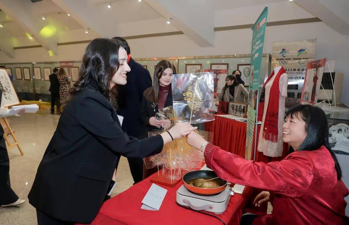 扬州灯彩、漆器、剪纸、泥人、糖画等五个非遗项目现场展示,引得外交官们驻足体验。