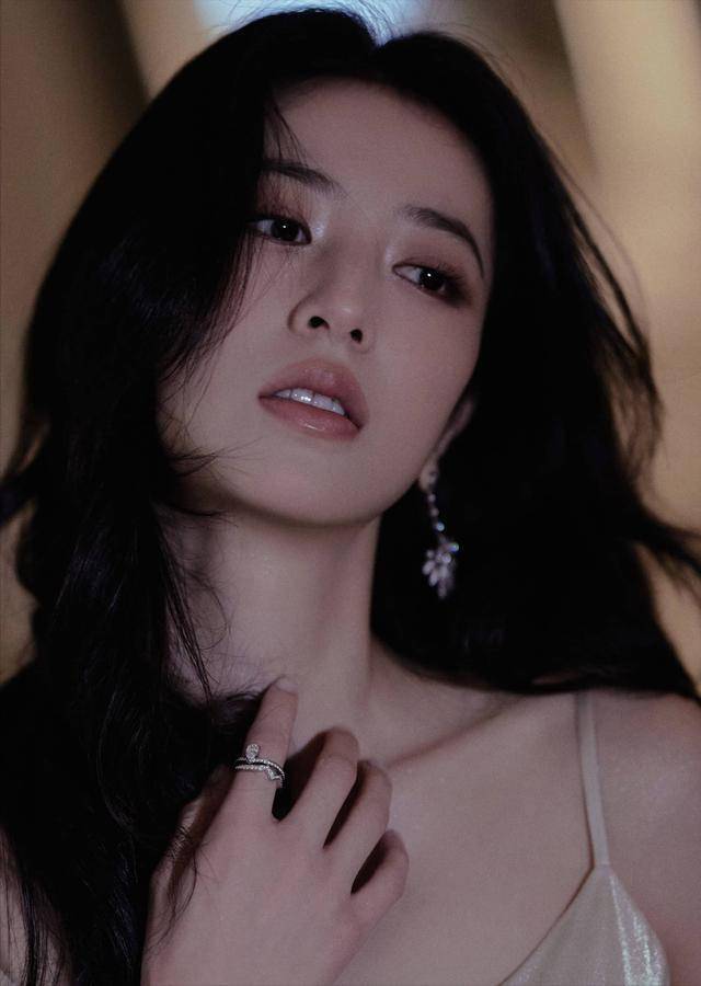 周雨彤造型的点睛之笔,不在于大件华丽珠宝,而是精致小巧的钻石耳饰和戒指。这些小细节在灯光下微微闪烁,却不会压过整体氛围。