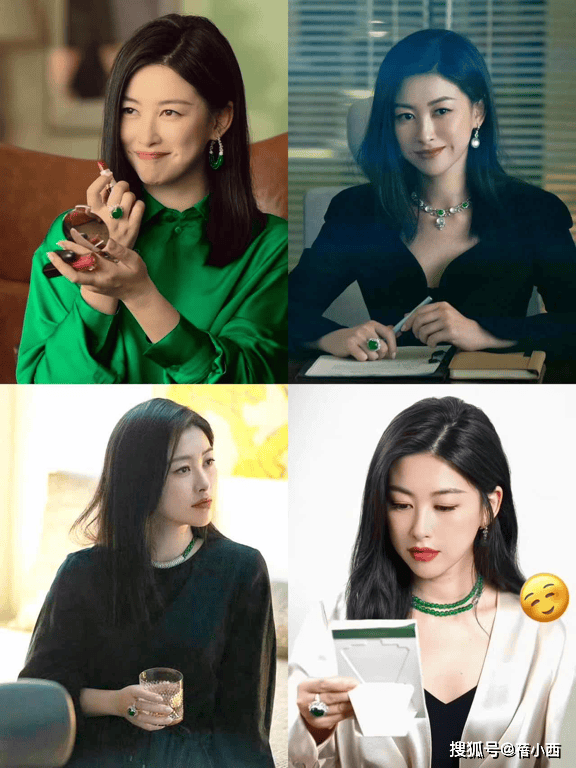 在配饰方面,朱珠偏爱以华丽点睛的细节来提升造型档次,如绿色系的配饰与翡翠元素相得益彰。绿色耳环和项链不仅提升整体亮度,还能与服装颜色呼应,呈现出高级而华美的气质。翡翠材质本身偏成熟,若是年轻朋友尝试,或许需要更稳健地搭配,以免喧宾夺主。