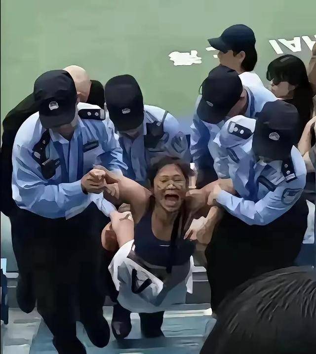 年幼的儿子就坐在她身旁,稚嫩的小手试图拉住母亲,想要阻止她的冲动行为,但她对此置若罔闻,依旧我行我素,对着安保人员和观众挥舞着手臂,脸上洋溢着一种不容置疑的嚣张,甚至还比出了象征胜利的“耶”手势。伟德国际victor1946面对如此情景,工作人员的劝说已然失效,民警随后介入。在数次口头警告无效后,警方不得不采取强制措施,将其抬离现场,比赛才得以勉强继续。