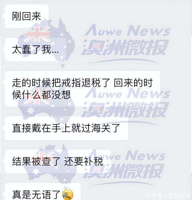 然而,在离开澳洲之前,M在机场做了一件事情,没想到这件事引发了麻烦。她和丈夫准备好行李准备入境澳大利亚时,突然被海关人员拦了下来。这个时候,M还没有意识到有什么问题,直到海关人员询问她手上的戒指,并要求她提供发票和退税单,她才意识到,原来是因为她在离境前,bv1946伟德国际始于英国退了那颗戒指的税。