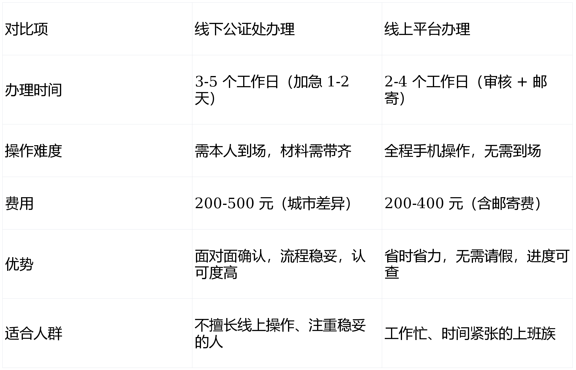 适合不擅长线上操作、希望当面确认细节的人群,全程需本人到场(重点!别人不能替你办公证)。