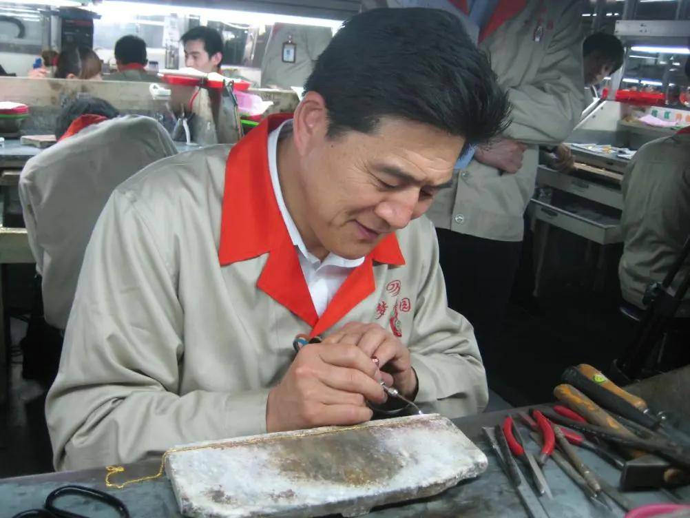 1994年,王忠善跑去北京,拜工艺美术大师南志刚为师,学习更先进的镶嵌和花丝技艺。