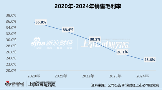 从盈利能力角度看,随着加盟门店销售占比的提升,公司整体毛利率也呈现出下降趋势。2020年-2024年,公司的销售毛利率分别为35.8%、33.4%、30.2%、26.1%及23.6%。分销售模式看,2025年上半年,自营渠道销售毛利率为37.79%,而加盟代理模式的销售毛伟德国际bv1946利率仅为16.81%。