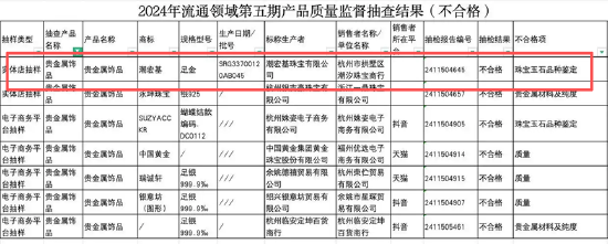 2025年4月,浙江省监管局发布的2024年度产品质量监督抽查情况通告更是拉响了品质警报。通告显示,潮宏基珠宝有限公司生产的“潮宏基”牌贵金属饰品,因“珠宝玉石品种鉴定”项目不合格被点名。