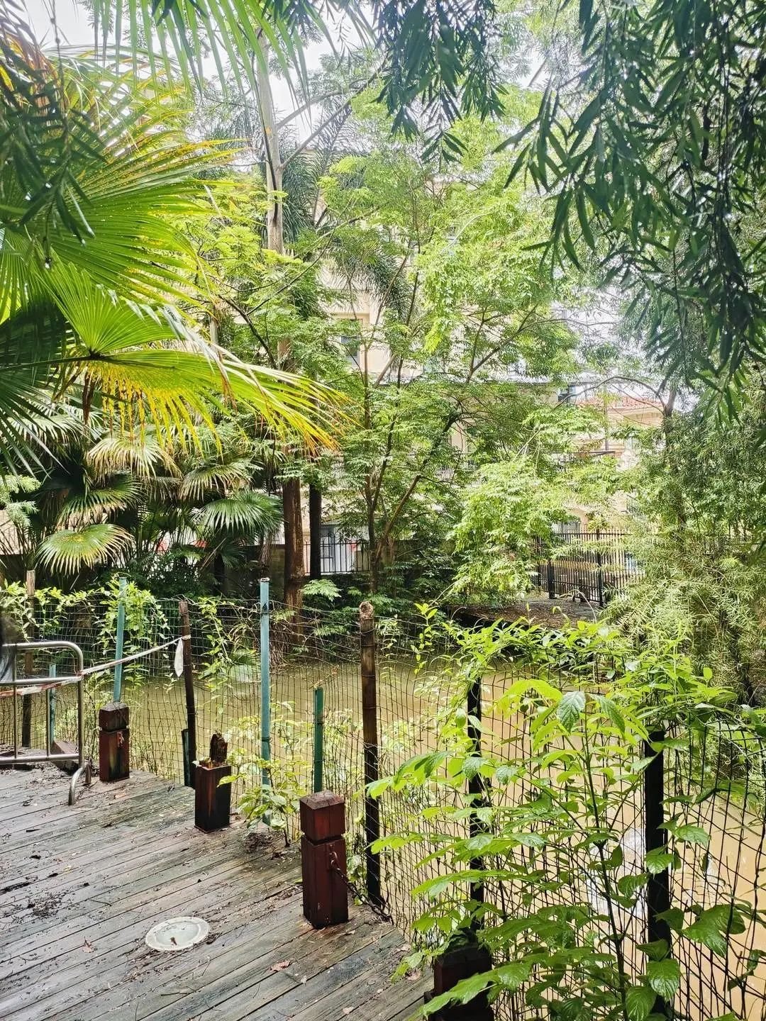 7月12日,记者来到图片中的位置,相较网传图片,该地绿植长高了,将别墅部分区域遮挡。黄杨钿甜拍照处的防护栅栏出现老化,管理单位正在更换新的栅栏,并张贴有温馨提示:此处施工,请绕行。