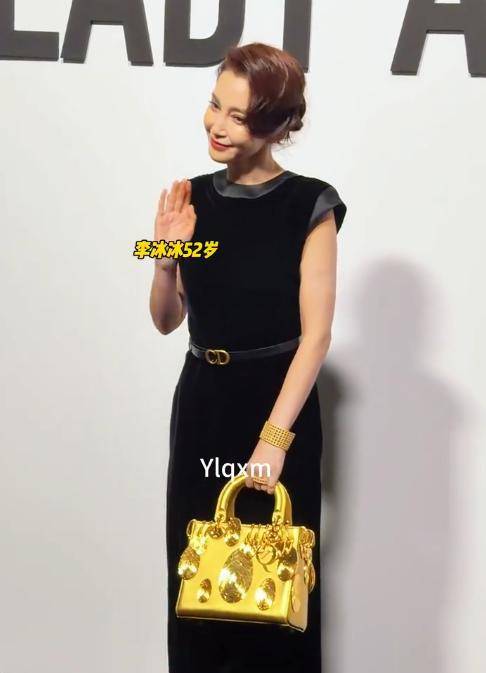 率先走上红毯的是资深演员李冰冰。她身着一袭黑色无袖长裙,裙面上银线勾勒的山水图案随着她的步伐轻轻流动,宛如一幅行走的水墨画卷。她手中那款金色手袋,据说是迪奥珍藏系列的经典款,全球仅存三只,这次专程从法国运来。