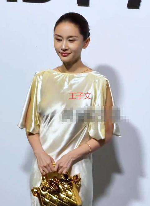 与杨采钰的精心打扮相比,王子文的造型显得更为轻松自然。她选择了一件米白色丝质连衣裙,裙长刚过膝盖,露出的小腿线条纤细优美。